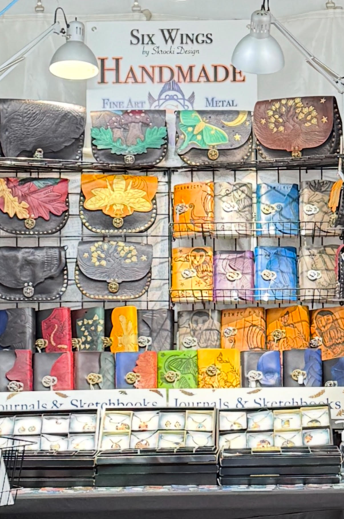 Each book in this series is meticulously hand carved, hand dyed, hand finished and hand bound. Each image carved onto these books is an original created from our inspirations, which include: fantasy, travelling to ancient ruins, history and mythology. Some of these books are also hand painted with special leather paints and overlays. The leather used is an ethically sourced tooling hide that softens in over time. All of the leather used for these books is vegetable tanned and is a byproduct of the food industry. The acid free card stock pages, are great for: writing, drawing, sketching, photographs, scrapbooking, calligraphy, pen, pencil, etc. The classic bind used on these books gives an elegant old-world finish and allows the user or local book-binding clubs to easily rebind the book with any type of paper. The dyes used are an environmentally friendly water based dye which leaves a rich hand-finished touch on each book bringing out the unique highlights, grains, and character of each piece of leather*. We use a variety of different, hand applied, finishes to both protect and emphasize the leathers natural beauty. Finishes may include, but are not limited to, any or all of the following depending on the piece: high quality oils, waxes, gums, and protective coats. Each book is hand buffed once the finishes have set to give it a resilient sheen.